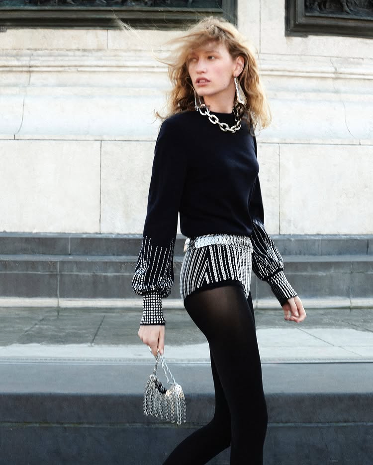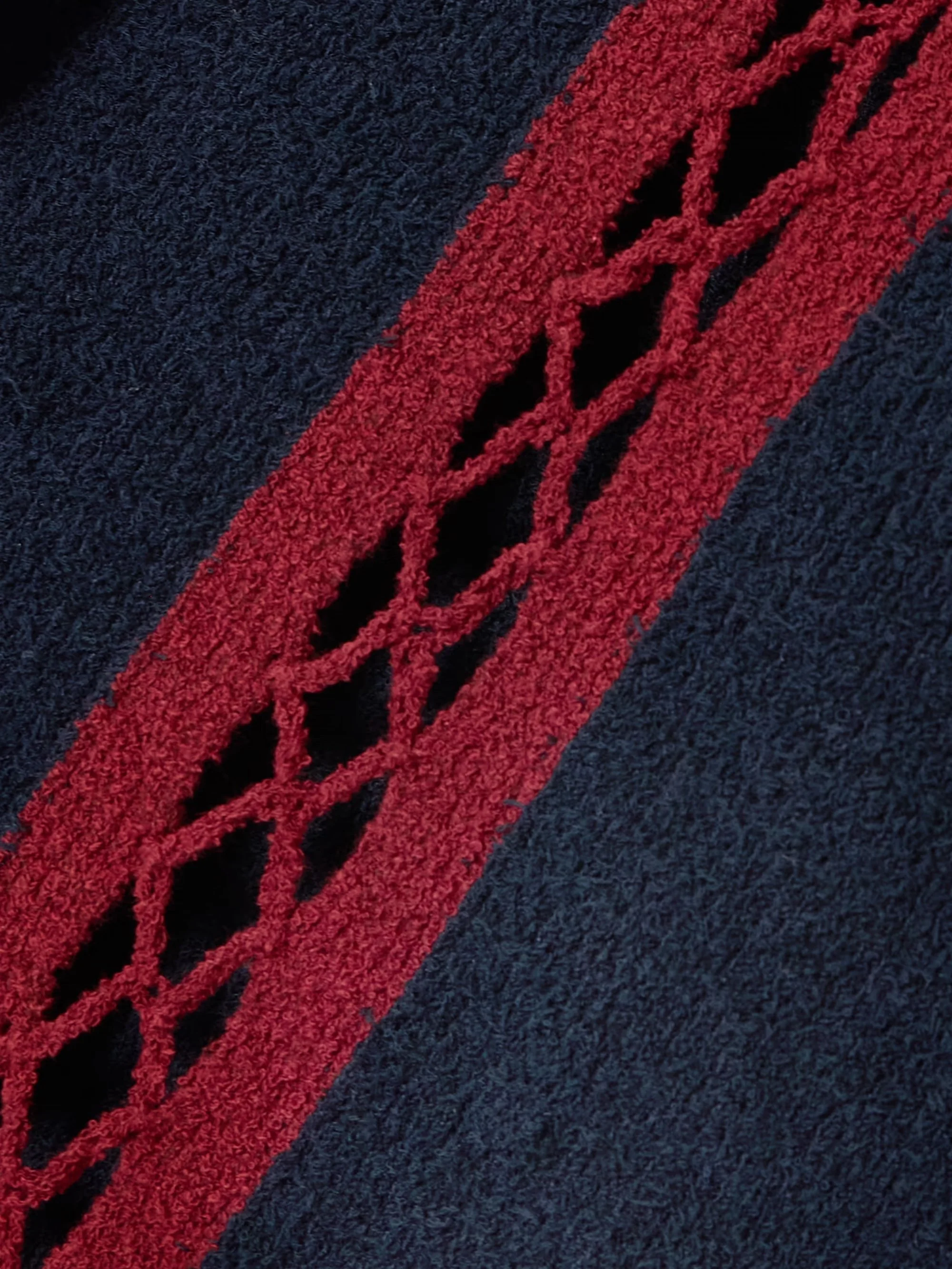 Creations of jacquards, intarsia, embroidery patterns • 3D stitches in crochet, hand & industrial knitting •. Laminated prints & Experimental fabric treatments • Mesh & Metal Assemblage techniques in knitting & crochet • Draping body scale knitted panels